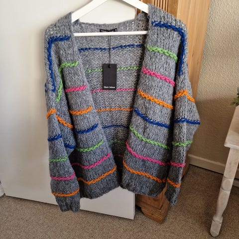 Black Colour smuk multifarvet strik cardigan fra Black Colour i en lækker blød børstet uld og mohair kvalitet.
