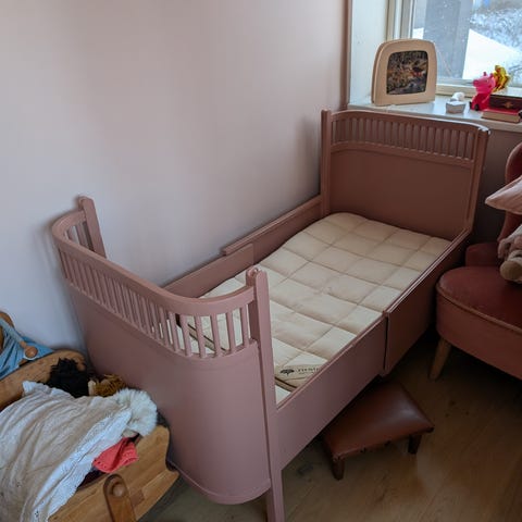 Madrassen er kapok til Juno seng, lavet i 100% økologiske og allergivenlige materialer. Madrassen er fast som anbefalet til babyer og børn. Nypris på madrassen er 1200,-.