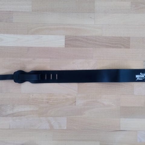 Gibson guitarrem til elektrisk guitar i sort. Remmen har broderet Gibson-motiv med rød guitar og hvide detaljer på skulderstykket, som er 7 cm bredt og polstret. Remmen er justerbar i længdenop til 148 cm. Fra et rent og røgfrit hjem