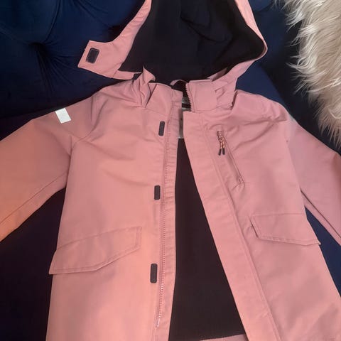 Lyserød Mikk-line regnjakke str 122 - kun brugt 3 - 4 gange - 50 kr.