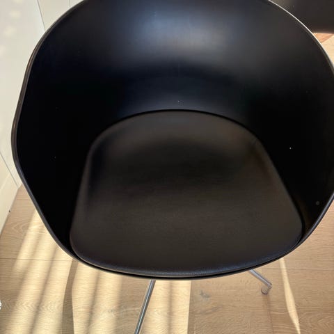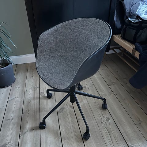 HAY About A Chair (AAC15) i helpolsret Steelcut i sort. Helpolstret og med hjul. Designet af Hee Welling. Til kontoret, skrivebordet eller måske til spisebordet. I god stand.