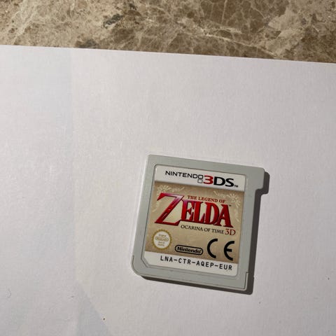 Nintendo 3DS The Legend of Zelda Ocarina of Time 3D spil. Fysisk spil til Nintendo 3DS-konsol med spilboks, spilkort og tilhørende manualer/vejledninger som vist på billedet. Action-adventure spil i The Legend of Zelda-serien til brug på Nintendo 3DS-systemer.
