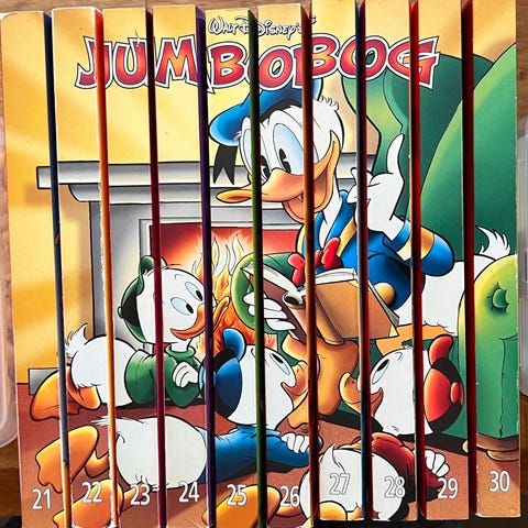 Disney Anders And Jumbo Bog samling af tegneseriebøger med Anders And, Mickey Mouse og andre Disney-figurer. Serien består af tykke tegneseriehæfter med farverige forsider og historier fra Andeby-universet. Velegnet til læsning for børn og samlere af Disney-tegneserier.