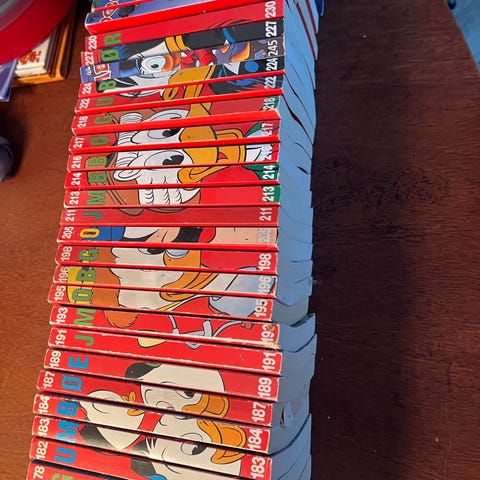 Walt Disney Anders And & Co jumbobøger samling. Serien indeholder flere forskellige jumbobøger med Anders And, Onkel Joakim, Mickey Mouse og andre figurer fra Disney-universet. Bøgerne er i lommebogsformat med farverige tegneserieforsider. Velegnet til læsning for børn og andre, der kan lide klassiske Disney-tegneserier og samling af jumbobøger.