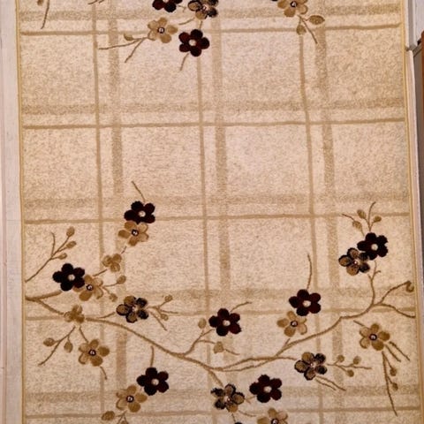 Tæppe der har lagt i forbindelse med lille sofagruppe. Pæn stand. Ikke falmet. Står knivskarpt i sine dybrøde nuancer. Skal afhentes.