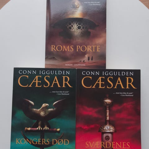 4 bøger af Conn Iggulden Emperor og Conqueror bogsæt med historiske romaner. Sættet indeholder titlerne "Emperor: The Field of Swords", "Emperor: The Gates of Rome", "Conqueror" og "Caesar". Bøgerne er på engelsk og omhandler historiske fortællinger med fokus på Romerriget og kejsertiden. Velegnet til læsere af historiske romaner og serieromaner.