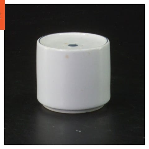 Royal Copenhagen salt- og peberbøsser i hvidt porcelæn med diskret blå kant langs toppen. Sættet består af to cylindriske bøssser med forskellige huller til henholdsvis salt og peber. Velegnet til daglig brug på spisebordet eller som supplement til andet stel fra Royal Copenhagen i lignende farver og stil.