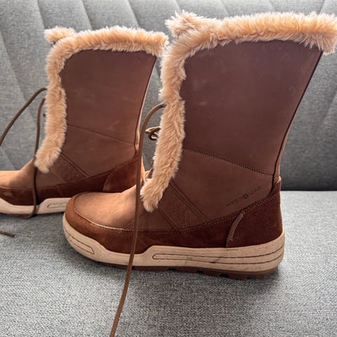 Varme vinterstøvler til damer fra Caprice i størrelse 38, naturligt blødt læder og ruskind, i god stand. Passer til en normal læg (ikke brede). 100 kr.