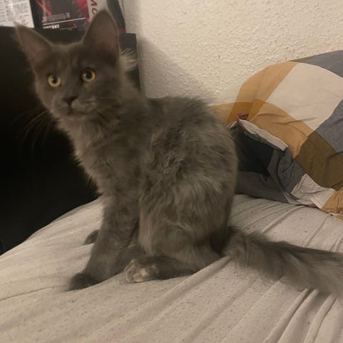 Simba er en smuk, langhåret killing med det bedste fra begge verdener. Han har en flot, tæt pels med smukke aftegninger og store, udtryksfulde øjne.