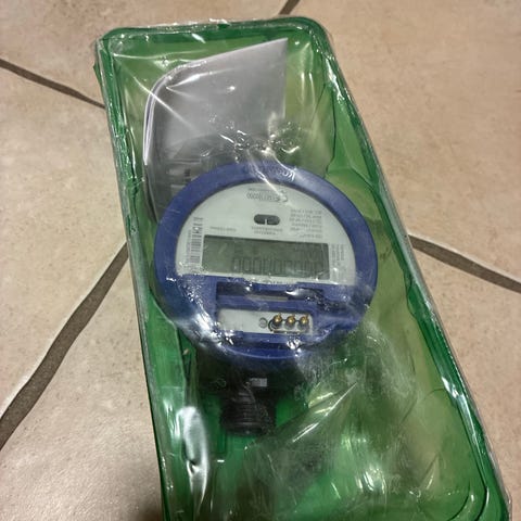 Ubrugt måler med intakt plombetråd. Tæller står på 00000 m³.