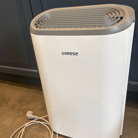 Eeese Mk3-25L affugter i hvid. Modellen er en elektrisk, bærbar affugter med en kapacitet på 25 liter pr. døgn (ved 30 °C / 80 % RH) og anbefalet arbejdsområde op til 46 m². Den har en vandtank på 4,8 liter og er beregnet til drift ved temperaturer fra 5 til 35 °C. Affugteren tilsluttes 220-240V / 50-60Hz og har en nominel effekt på 600W. Enheden er egnet til indendørs brug i rum som fx kælder, bryggers eller andre fugtige områder, hvor der er behov for at reducere luftfugtigheden.