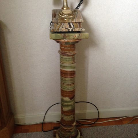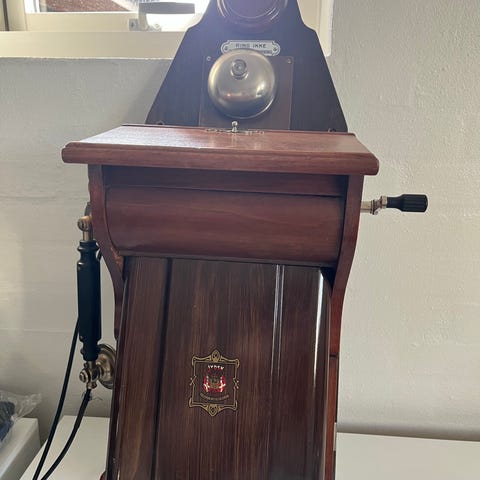 Lækkert vintage telefonbord i messing og teaktræ👌🤩 telefonen sælges seperat i en af vores andre annoncer💚
