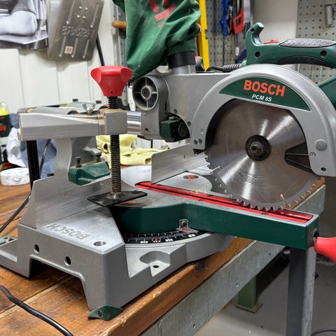 Vi har købt saven i 2020 i forbindelse med vi byggede en pergola. Ellers har den ikke været brugt og står i vores garage.