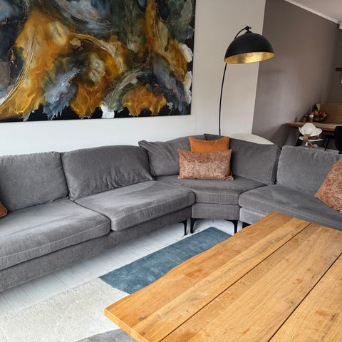 Sofa i rigtig god stand. Stoffet er blå fløjl. Vi er flyttet og desværre vender sofaen “forkert” i vores nye stue.