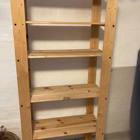 Meget velholdt stigreol med tre hylder og en bogkasse.