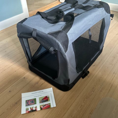 Sammenklappelig hundebur til transport eller udstilling. Ikke velegnet når hunden ikke er under opsyn. Kan åbnes i top og front. 600D polyester med metalramme gør buret stabilt