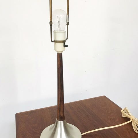 Pænt gammel lampe som er VIRKELIG FIN med aluminiums skærm og palisander.