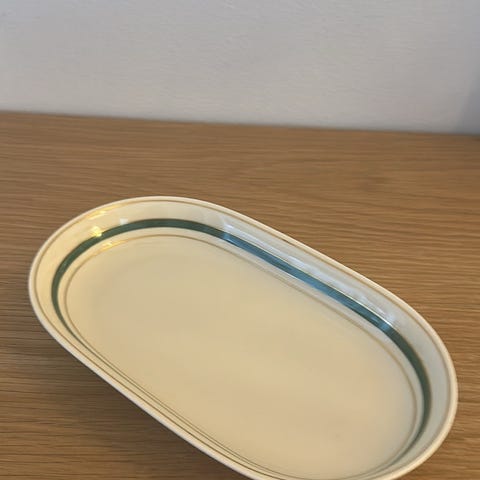 Kartoffel skål fra Kjøbenhavns Porcellains Maleri (KPM) i mønsteret "Grøn Vallø" med guld- og grøn kant.