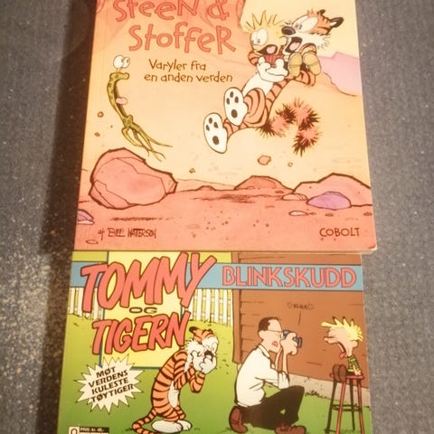 Tegneserien Steen og Stoffer skrevet af Bill Watterson, Carlsens comics. Fra røgfrit hjem. Med mange brugssspor, men stadig brugbar. Sendes gerne hvis køber betaler porto.