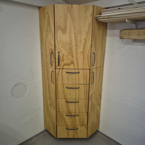 Hjørneskab med Le mans udtræk fra Kvik.