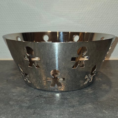 Alessi Girotondos runde fade i stål er perfekt til små dekorationer eller som frugtfad på køkkenbordet. Det store fad kan også bruges som serveringsbakke, når du skal gøre lidt ekstra ud af det.