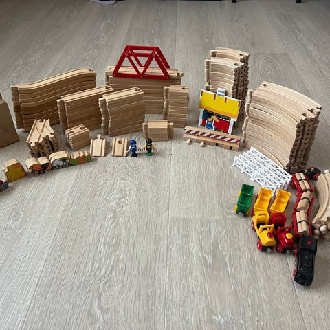 Stor kasse med mange træ togskinner, elektrisk togene og broer.