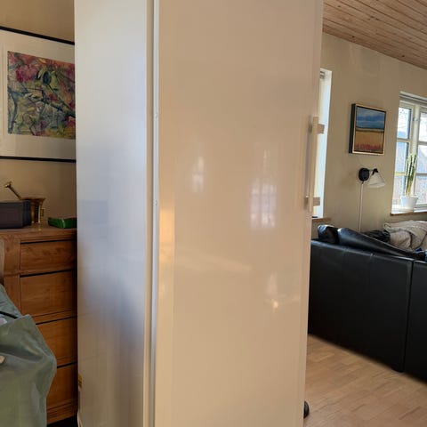 Det vides ikke hvor gammelt køleskabet er, men det har virket fint som vores ekstra køleskab, og virker stadig.