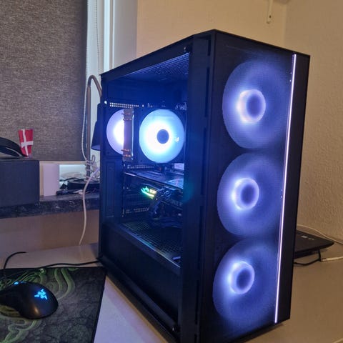Sælger en stærk RGB gaming PC samlet i kvalitetsdele. SSD er monteret, men Windows er ikke installeret endnu.