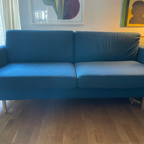 Sofa gives væk grundet flytning. Har tydelige brugsspor i form af pletter.