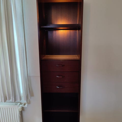 Vitrineskab med lys i - mahogni/mørk træ