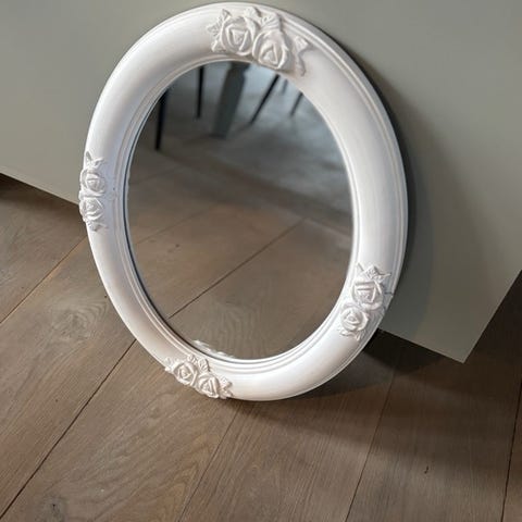 Spejl med buet ramme og sprosser