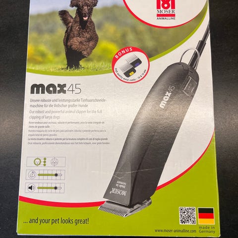 Moser Arco hundeklipper i sort. Trådløs klippemaskine til hund med opladestation. Medfølgende afstandskamme i flere længder til justering af klippelængde. Velegnet til trimning og pelspleje af hunde. Fremstillet i Tyskland.