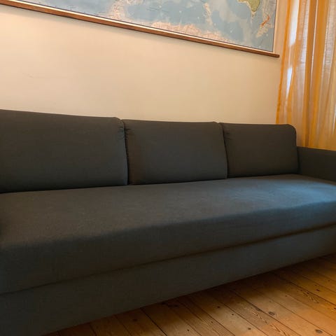Gratis sovesofa til afhentning. Mangler den ene fod på bagside.
