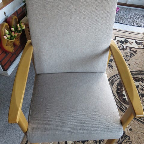 Stolen har høj ryg og gode armlæn, så man sidder rigtig komfortabelt – perfekt til afslapning, læsning eller tv-kiggeri.