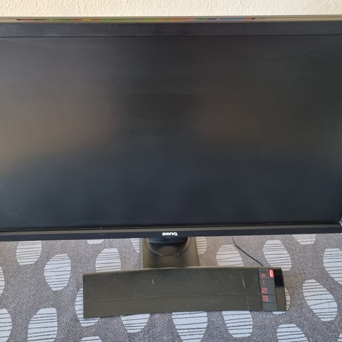 BenQ Mobiuz EX2710S skærm på 27". LCD-monitor egnet til brug med computer. Skærmen har Mobiuz-design med trekantet fod og bagpanel med indgraveret Mobiuz-logo. Velegnet til almindeligt kontorbrug, spil og multimedie, afhængigt af tilsluttede enheder og brugerens behov.