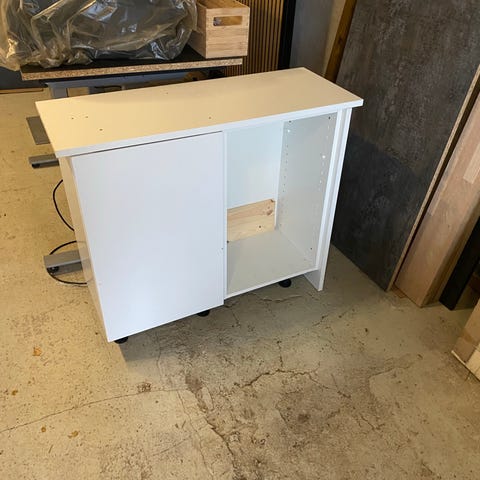 Skab med skuffer i sort og mørkt træfronter. Køkken skabe fra Kvik. bredde 60 cm.