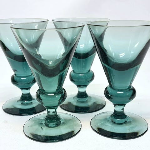 8 stk. originale Holmegaard Kirsten Piil hvidvinsglas i den klassiske grønne farve.