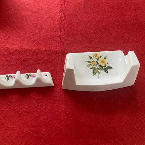 Porcelæns knage og holder til toiletpapir
