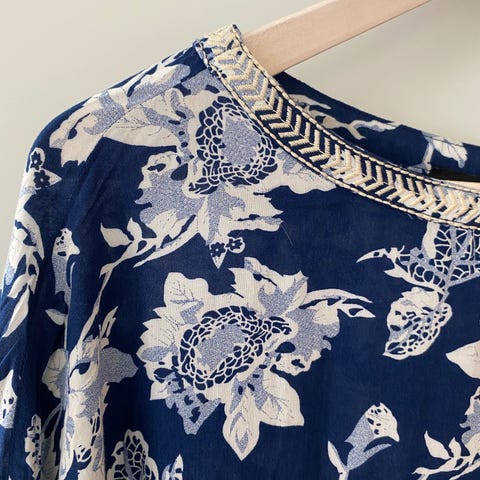 Let mønstret bluse med bådudskæring, lidt stretchy så kan passe alt mellem xs-s