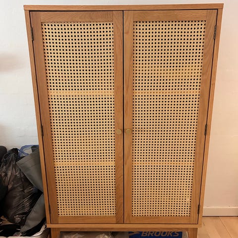 40x90 cm.H 110 cm.Afstand mellem hylder 30/32 cm.(faste hylder)