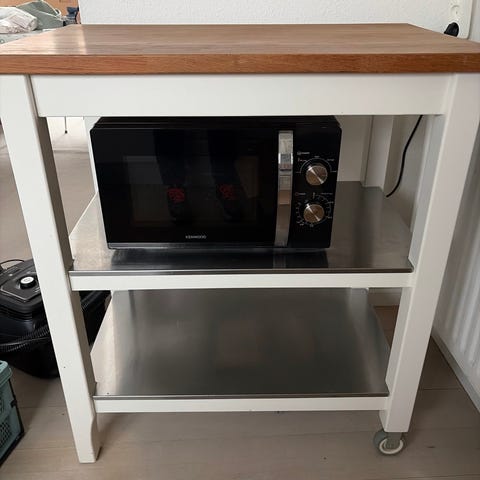 Køkkenø Tornviken fra IKEA med to store hylder på den ene side og siddeplads med plads til barstole eller andet på den anden. Se evt IKEAs hjemmeside for flere detaljer.