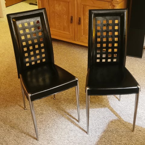 2 stk stole med læder. Brugsspor, men en rens vil gøre godt.