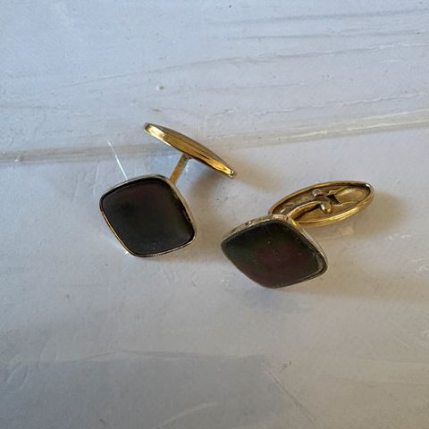 Sjove vintage manchetknapper lavet i guld farvet metal tror det er messing. Med en sømand på der ryger en pibe og holder et skib. De måler 1,5 cm i diameteren.
