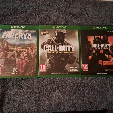 Far Cry 5 (aldrig brug) og Marvel Super Heroes Collection.