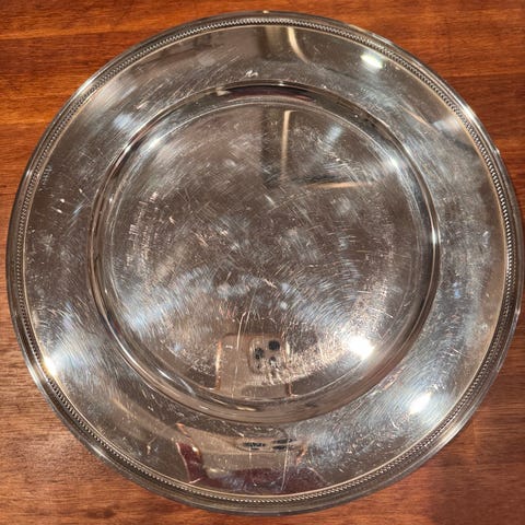 - Svend Toxværd sølvfad som er 36 cm i diameter.