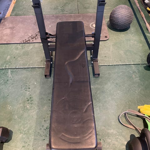 Justerbar vægtløftnings bænk hvor man kan ændre sædet, ryglænet og fod support. Ingen defekter. Pris kan ændres. Kan ikke leveres. Koster 800kr for ny.