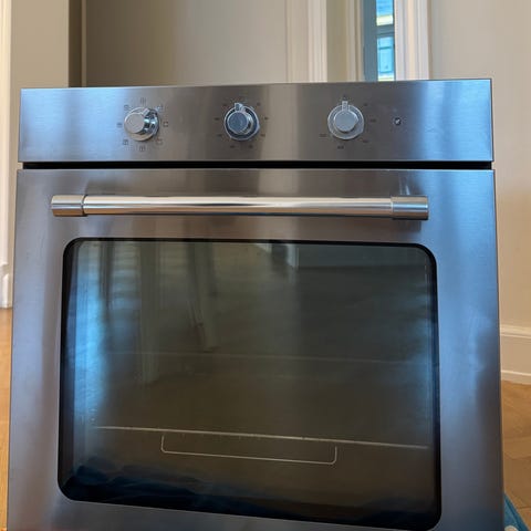 IKEA MATTRADITION indbygningsovn med rustfri stålfront. Den har mekaniske drejeknapper på fronten til indstilling af temperatur og funktioner. Ur-drejeknappen i midten virker ikke længere ordentligt. Ovnen er afmonteret og klar til afhentning, nem at montere på ny med blot 2 skruer og den har standard-mål. Der medfølger 1 bageplade samt 1 bagerist.