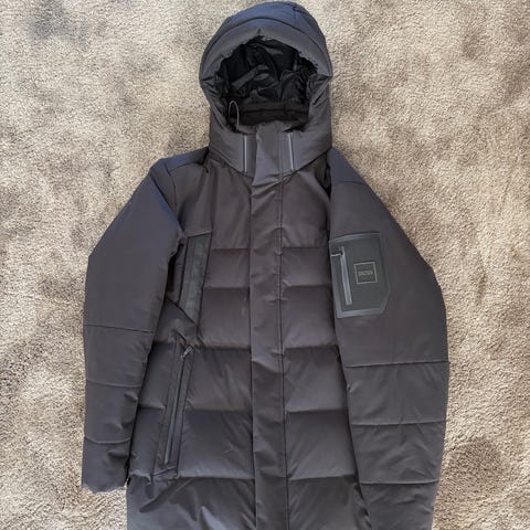Sælger min elskede Hugo Boss Skiles 64 monogram jakke, da jeg desværre er vokset ud af den. Jakke er super fed, limited edition og kan ikke købes nogen steder. Heller ikke brugt. Der er en syning inden i der er gået op. Men med lidt tråd og nål, kan dette nemt fikses.