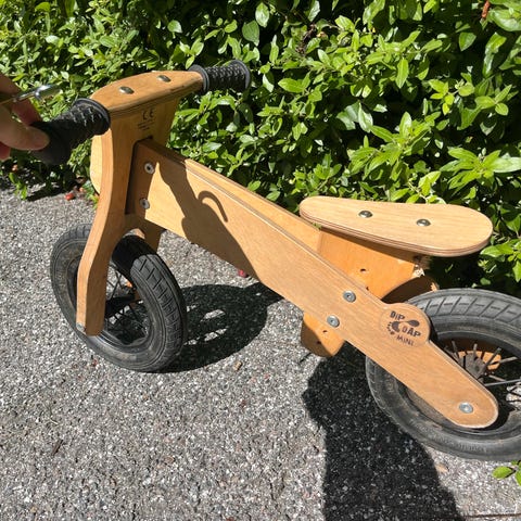 Løbecykel træ rød med prikker