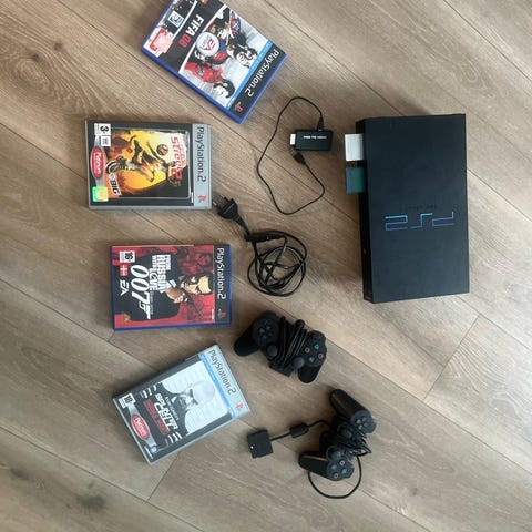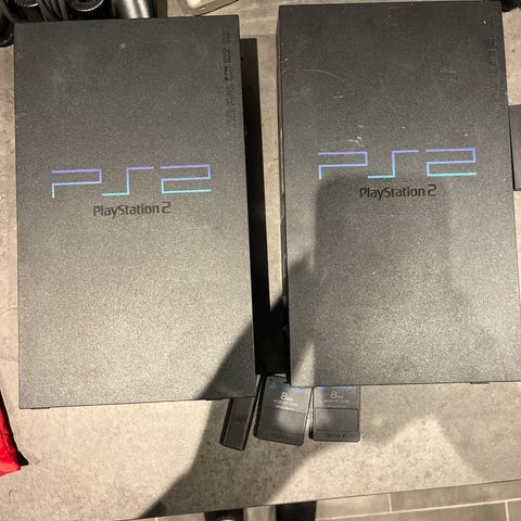 Har tømt garagen og sælger en masse Playstations 2 og 3 konsoller og diverse joysticks. Det følger en hulens masse kabler med i et mindre rod.